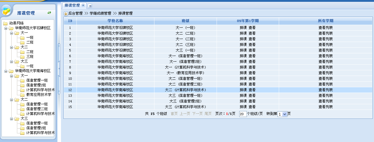 課程查詢系統(tǒng)是在通過(guò)互聯(lián)網(wǎng)為教師和學(xué)生提供課程表查詢的一個(gè)軟件系統(tǒng)。在動(dòng)易SiteFactory 2.5學(xué)校版中,學(xué)校工作人員或教師可在系統(tǒng)后臺(tái)方便進(jìn)行排課,而學(xué)生和任課教師可以在前臺(tái)對(duì)自己的課程表進(jìn)行快捷查詢。