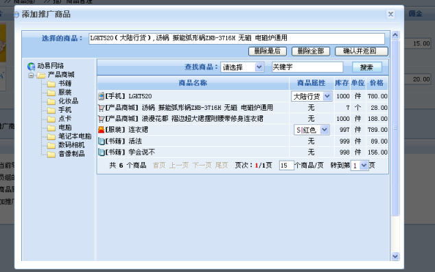 首先,我們需要將需要推廣的商品添加到推廣商品里,可以在后臺所有的已添加商品中任意選擇商品: