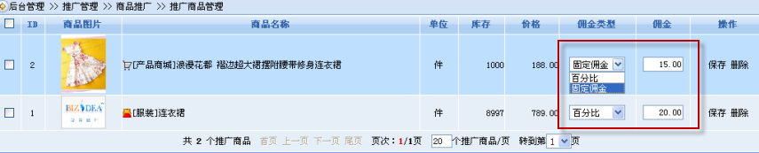 然后我們需要為每個推廣商品設(shè)定傭金類型和傭金值,如選擇固定傭金或百分比傭金: