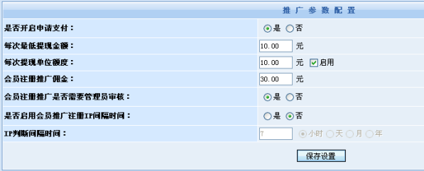 在后臺,管理員還可以對各項(xiàng)推廣參數(shù)進(jìn)行自由配置: