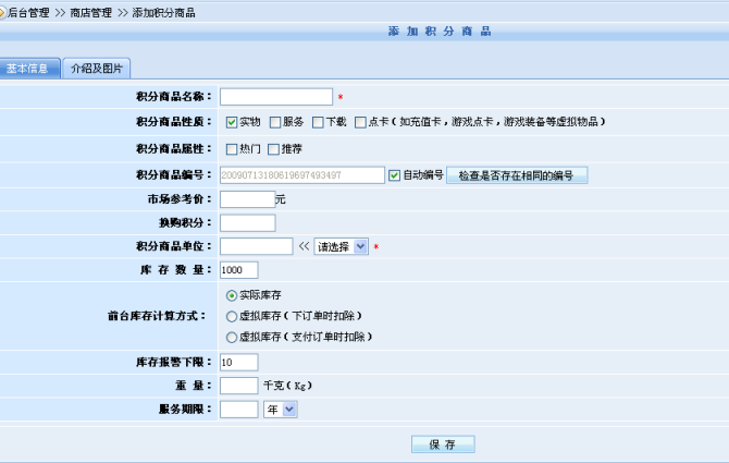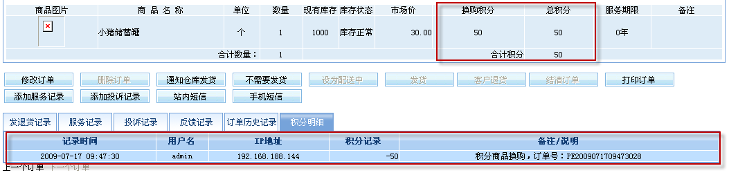 在BizIdea3.0中,商家可以在網(wǎng)站后臺事先添加好相應(yīng)的積分商品,以供前臺會員進(jìn)行兌換。而前臺會員在自己的積分達(dá)到商家設(shè)定的數(shù)值后便可以直接選定需要兌換的商品,然后提交兌換訂單,商家在后臺處理完訂單后便直接將兌換商品郵寄給會員,同時會員帳戶中減去相應(yīng)積分。而且,為了便于對積分商品和積分兌換訂單的良好管理,BizIdea后臺將對積分商品和訂單和普通商品及訂單進(jìn)行分開獨(dú)立管理,亦即后臺商品將分為普通商品和積分商品兩類、訂單也分為普通訂單和積分商品訂單兩類進(jìn)行管理。