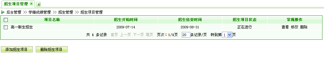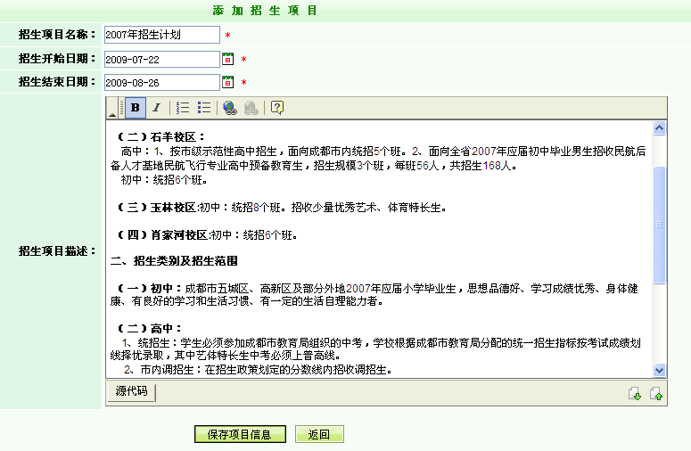 學校管理員可以在后臺方便添加學校的各項招生信息: