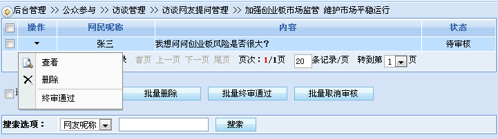同時(shí),訪談主持人、書記員或訪談工作人員可以對(duì)網(wǎng)友的提問(wèn)進(jìn)行修改、刪除等多種管理。