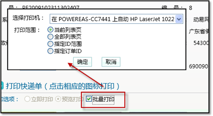 對于多個(gè)采用同一家快遞公司發(fā)貨的訂單,系統(tǒng)還支持快遞單批量打印功能,只需指定好打印范圍即可進(jìn)行批量快速打印。
