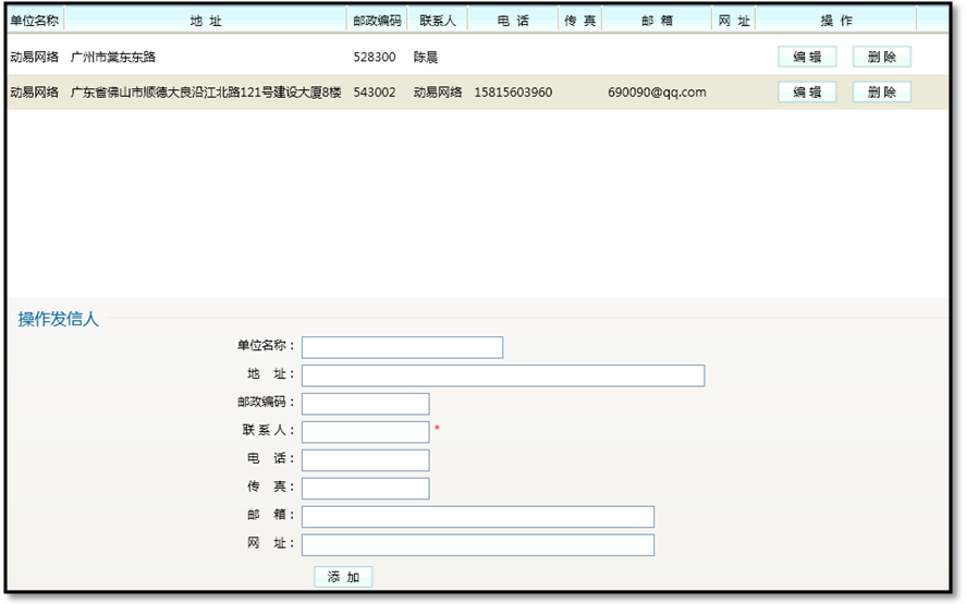 系統(tǒng)提供了多個(gè)發(fā)信人管理,用戶可以添加多個(gè)不同發(fā)信人信息,并在打印不同的快遞單時(shí)根據(jù)具體情況選擇不同的發(fā)信人。
