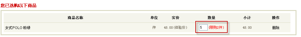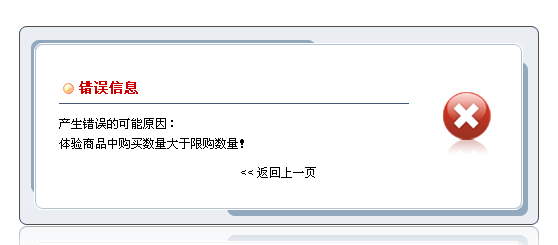 如果顧客的購(gòu)買(mǎi)數(shù)量大于限購(gòu)數(shù)量的話(huà),訂單將無(wú)法提交并提示錯(cuò)誤信息: